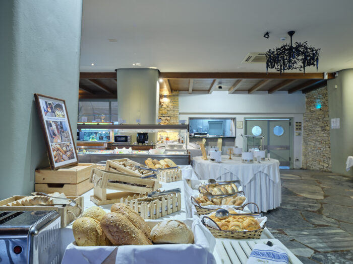 Καθημερινά μπορείτε να απολαύσετε το πλούσιο, παραδοσιακό πρωινό σε μπουφέ, αλλά και να επισκεφθείτε την ξεχωριστή γωνιά που έχουμε δημιουργήσει ειδικά για την προώθηση των ελληνικών γεύσεων και των κρητικών προϊόντων. Το εστιατόριό μας έχει βραβευτεί από το Ξενοδοχειακό Επιμελητήριο της Ελλάδος με το πιστοποιητικό «Greek Breakfast». (Μεταξύ άλλων, υπέροχων γεύσεων δοκιμάστε το κρητικό «σφουγγάτο» (ομελέτα με κολοκύθια) ή την Π.Ο.Π. γραβιέρα Κρήτης. Αν είστε λάτρης των γλυκών, τότε μη χάσετε την ευκαιρία να γευτείτε τα χειροποίητα ανεβατά λουκούμια που μοιάζουν πολύ με τους σιροπιαστούς λουκουμάδες.)